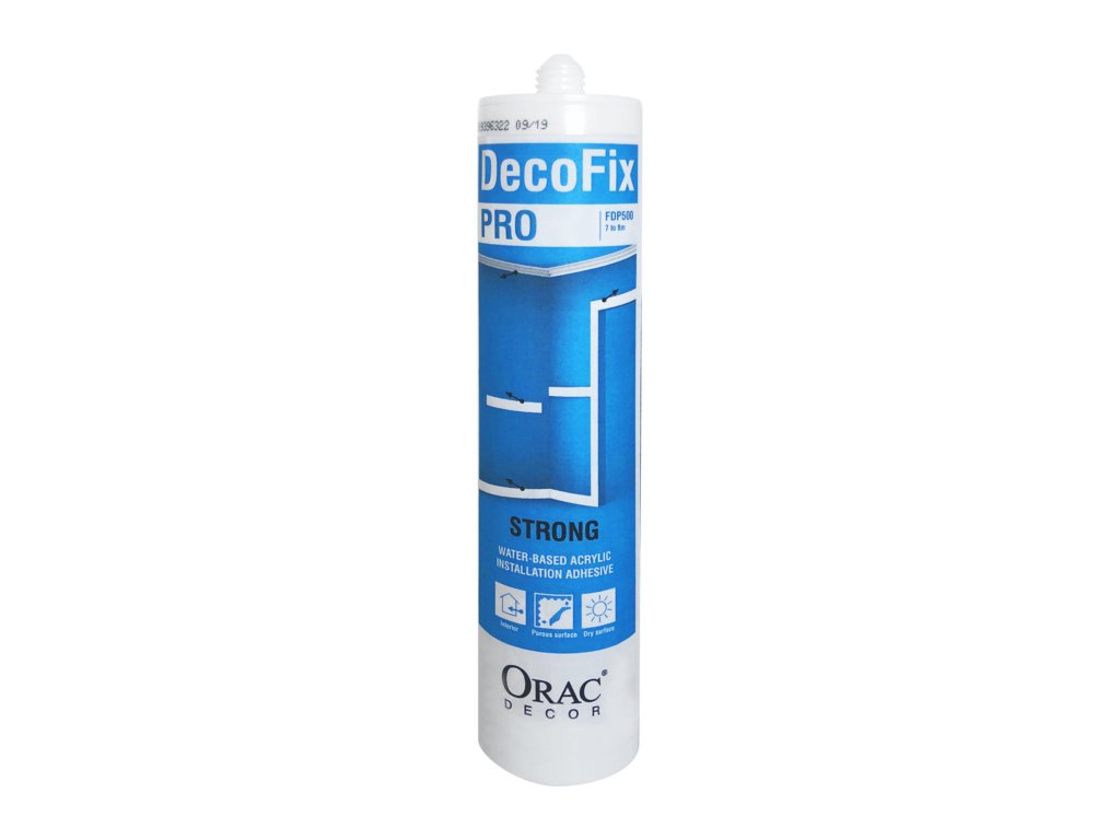 Extra erős akril ragasztó akril alapon belső használatra porózus felületeken. Orac Luxxus, Orac Axxent és Orac Basixx elemekhez ajánlott. Biztosítja a lécek fal és mennyezet közötti tartós illesztését.