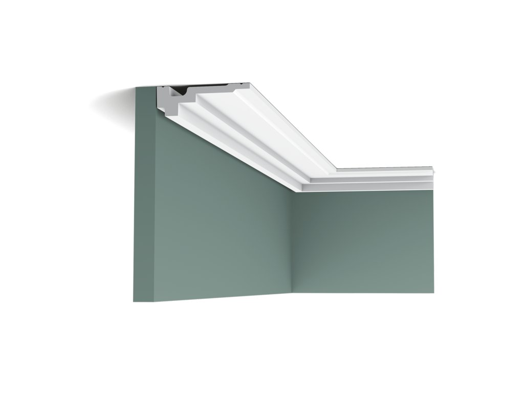 PUROTOUCH anyagból készült ORAC Luxxus sorozatú mennyezeti szalag, amely közvetett világítási profilhoz is használható. Rendkívül dekoratív hatású.