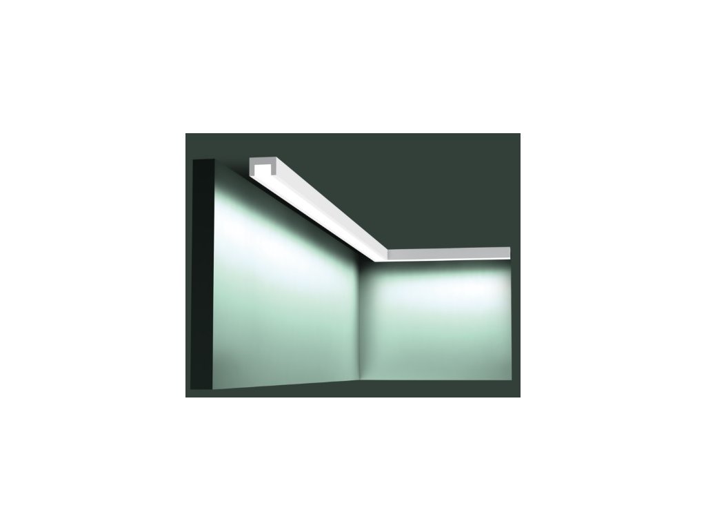 Az ORAC Axxent sorozat DUROPOLYMER anyagú mennyezeti sínje, amely közvetett világítási profilokhoz is használható. Rendkívül dekoratív hatás.